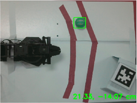 This node finds the green ball and determines its coordinates on the x-y plane. It publishes those coordinates and publishes an Image message that displays the scene with a box around the ball and the coordinates in centimeters in the corner.
