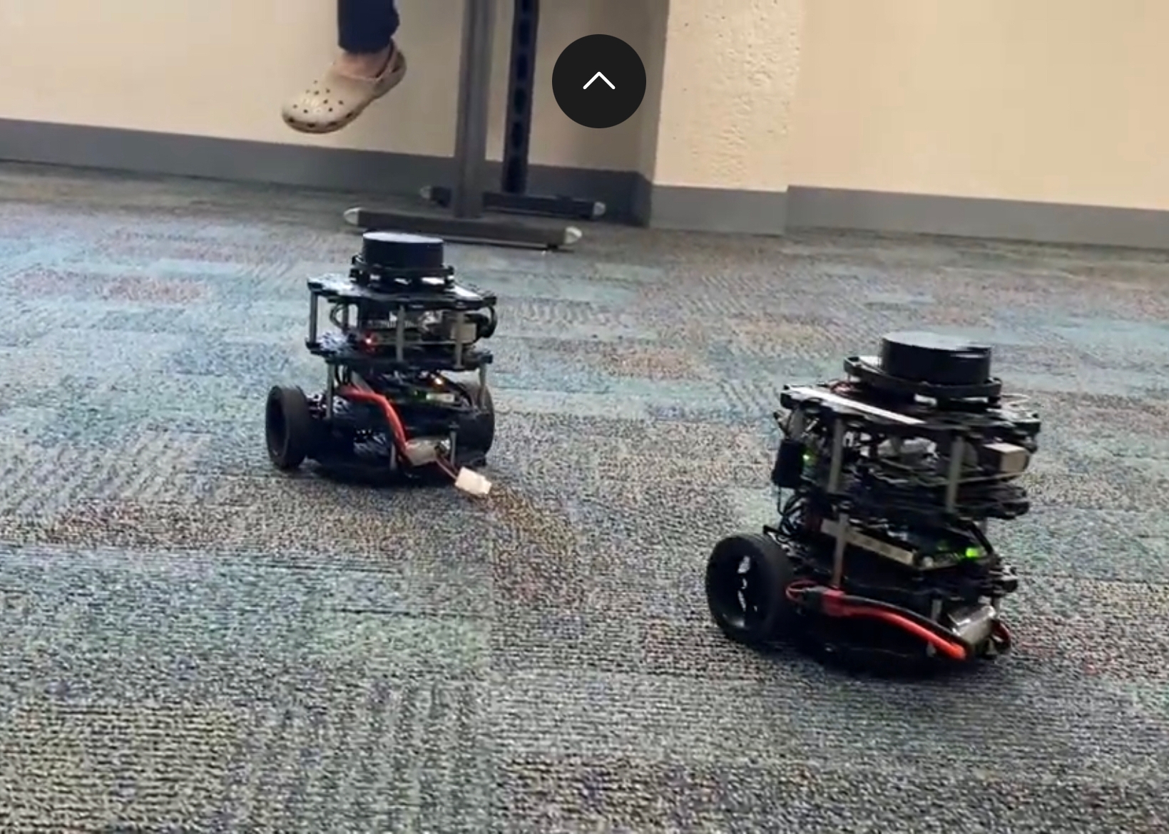 The robots have one of two roles, cop and robber. The robbers flee from cops while avoiding obstacles, as the cops are in hot pursuit of them. When a cop is within a certain distance, and the cop catches the robber, their roles switch, and the new robber gets a 10-second head start to run away. If a spectating human feels left out of the fun, they can press a button to take control of their robot and chase the robber as the cop, or chase the cop as the robber.