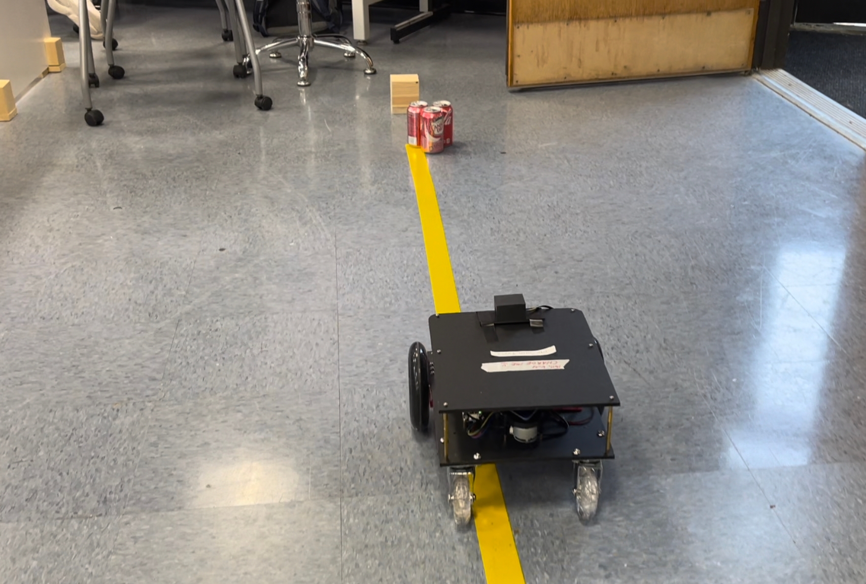 Another challenge we had to adapt to was the actual bowling motion. We initially proposed that the robot should implement concepts from the line follower so that it could adjust its course while rolling down the alley. However, we discovered that the robot’s bowling motion was too quick for it to reliably adjust itself in such a short time. To resolve this, we pivoted away from adjusting in-motion and instead implemented aligning itself as best as possible before it moves forward at all.